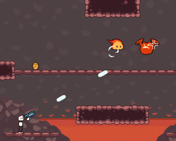 Most stages are small and compact in order to keep the action flowing. Weapons will spawn randomly on the map and must be collected in order to earn points (thus changing the weapon, like in Super crate Box). Unlike SCB, I've decided to add a countdown timer too to crank up the urgency of collecting your newly spawned weapon drop.